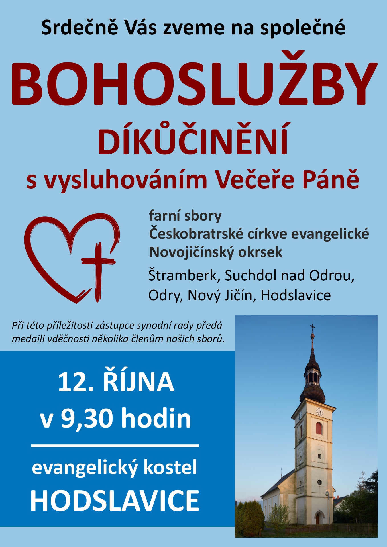9.15 bohoslužby Hodslavice - vysluhování sv. Večeře Páně